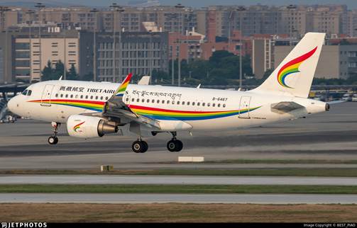 注册号为B-6467的藏航A319带鲨鳍小翼